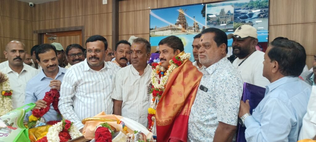ಕೆ ಆರ್ ನಗರ. ಫೆ.12:- ನವನಗರ ಅರ್ಬನ್ ಕೋ ಆಪರೇಟಿವ್ ಬ್ಯಾಂಕಿನ ನಾಲ್ಕನೇ ಬಾರಿಗೆ ಅವಿರೋಧವಾಗಿ ಅಧ್ಯಕ್ಷರಾಗಿ ಆಯ್ಕೆಯಾದ ಕೆ ಎನ್ ಬಸಂತ್ ನಂಜಪ್ಪನವರನ್ನು ಬ್ಯಾಂಕಿನ ಆಡಳಿತ ಮಂಡಳಿ ಮತ್ತು ಪಟ್ಟಣದ ವಿವಿಧ ಸಂಘ ಸಂಸ್ಥೆಗಳು ಪದಾಧಿಕಾರಿಗಳು ಅಧ್ಯಕ್ಷರು ಅಭಿನಂದಿಸಿ ವಿಜಯೋತ್ಸವವನ್ನು ಆಚರಿಸಿದರು.
