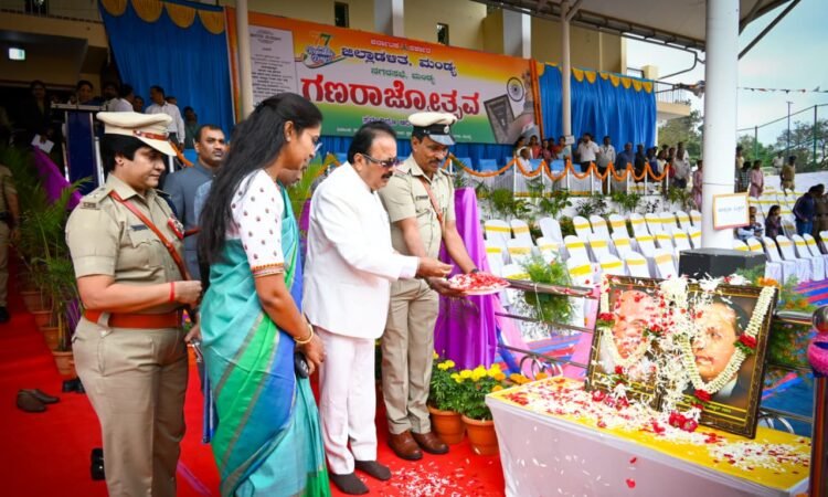 ಜಿಲ್ಲಾಡಳಿತದ ವತಿಯಿಂದ ನಗರದ ಸರ್ ಎಂ ವಿಶ್ವೇಶ್ವರಯ್ಯ ಕ್ರೀಡಾಂಗಣದಲ್ಲಿ ಆಯೋಜಿಸಿದ್ದ 77 ನೇ ಗಣ ರಾಜ್ಯೋತ್ಸವ ಕಾರ್ಯಕ್ರಮದಲ್ಲಿ ಭಾಗವಹಿಸಿ ಮಾತನಾಡಿದ ಅವರು ಬ್ರಿಟೀಷರ ಆಳ್ವಿಕೆಗೆ ಒಳಪಟ್ಟಿದ್ದ ನಮ್ಮ ದೇಶಕ್ಕೆ ಸ್ವಾತಂತ್ರ್ಯ ತಂದುಕೊಡಲು ತಮ್ಮ ಜೀವನವನ್ನು ಮುಡಿಪಾಗಿಟ್ಟ ಅನೇಕ ಮಹನೀಯರುಗಳು, ಮಹಾತ್ಮ ಗಾಂಧೀಜಿ, ಬಾಲಗಂಗಾಧರ ತಿಲಕ್, ಗೋಪಾಲಕೃಷ್ಣ ಗೋಖಲೆ, ಲಾಲ ಲಜಪತರಾಯ್, ಜವಾಹರಲಾಲ್ ನೆಹರು, ಸುಭಾಷ್ ಚಂದ್ರ ಬೋಸ್ ಮುಂತಾದವರ ನೇತೃತ್ವದಲ್ಲಿ ನಡೆಸಿದ ಸ್ವಾತಂತ್ರ್ಯ ಹೋರಾಟಗಾರರ, ತ್ಯಾಗ-ಬಲಿದಾನ ಫಲವಾಗಿ 1947 ಆಗಸ್ಟ್ 15 ರಂದು ನಮ್ಮ ದೇಶಕ್ಕೆ ಸ್ವಾತಂತ್ರ್ಯ ದೊರಕಿತು ಎಂದು ಹೇಳಿದರ ಸ್ವಾತಂತ್ರ್ಯಗೊಂಡ ನಂತರ, ಇಡೀ ದೇಶವನ್ನು ಭೌಗೋಳಿಕವಾಗಿ, ಭಾಷಿಕವಾಗಿ ಒಗ್ಗೂಡಿಸುವ ಅನಿವಾರ್ಯತೆ ಉದ್ಭವಿಸಿತು. ಜೊತೆಗೆ ಏಕರೂಪದ ಕಾನೂನು ಹಾಗೂ ಆಡಳಿತ ವ್ಯವಸ್ಥೆಯನ್ನು ಜಾರಿಗೊಳಿಸುವ ಮೂಲಕ ದೇಶದ ಏಕತೆಯನ್ನು ಬಲಪಡಿಸಲು ಡಾ. ಬಾಬಾ ಸಾಹೇಬ್ ಅಂಬೇಡ್ಕರ್ ಅವರ ನೇತೃತ್ವದಲ್ಲಿ “ಭಾರತ ಸಂವಿಧಾನ ಕರಡು ರಚನಾ ಸಮಿತಿ”ಯನ್ನು ರಚಿಸಲಾಯಿತು ಎಂದು ಹೇಳಿದರು
