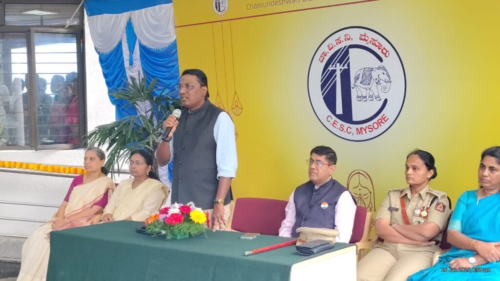 ಮೈಸೂರು, ಜ.26, 2026: ಕುಸುಮ್-ಸಿ ಹಾಗೂ ಕುಸುಮ್-ಬಿ ಯೋಜನೆಗಳ ಸಮರ್ಪಕ ಅನುಷ್ಠಾನ ಸೇರಿದಂತೆ ಸಿಬ್ಬಂದಿಗೆ ಆರೋಗ್ಯ ಸೇವೆಯನ್ನು ಕಲ್ಪಿಸುವ ನಿಟ್ಟಿನಲ್ಲಿ ಚಾಮುಂಡೇಶ್ವರಿ ವಿದ್ಯುತ್ ಸರಬರಾಜು ನಿಗಮ ನಿಯಮಿತ(ಸೆಸ್ಕ್)ವು ಕಡಿಮೆ ಸಮಯ, ಕಡಿಮೆ ವೆಚ್ಚದಲ್ಲಿ ಹಲವು ಪ್ರಗತಿ ಸಾಧಿಸಿದೆ. ಆಧುನಿಕ ತಂತ್ರಜ್ಞಾನ ಬಳಸಿಕೊಂಡು ಎಲ್ಲರೂ ಒಗ್ಗೂಡಿ ಸಂಸ್ಥೆಯ ಪ್ರಗತಿಗೆ ಮತ್ತಷ್ಟು ಶ್ರಮಿಸೋಣ ಎಂದು ಸೆಸ್ಕ್ ವ್ಯವಸ್ಥಾಪಕ ನಿರ್ದೇಶಕ ಕೆ.ಎಂ.ಮುನಿಗೋಪಾಲ್ ರಾಜು ಕರೆ ನೀಡಿದರು.