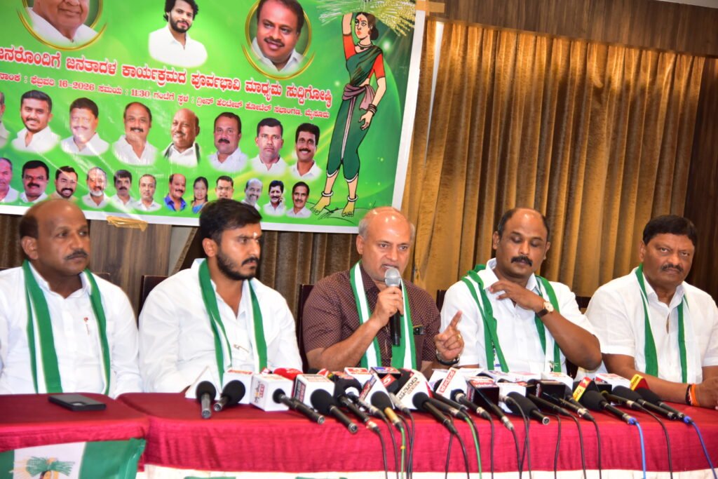 ಮೈಸೂರು, ಫೆ.16: ಕರ್ನಾಟಕ ರಾಜ್ಯ ರಾಜಕೀಯ ಚಟುವಟಿಕೆಗಳ ಜೊತೆಯಲ್ಲಿಯೆ   ಸಾರ್ವಜನಿಕ ಸಂಪರ್ಕ ಹಾಗೂ ಪಕ್ಷವನ್ನು ಸಂಘಟನೆ ಮೂಲಕ ಬಲಪಡಿಸುವ ಉದ್ದೇಶದಿಂದ Janata Dal (Secular) (ಜೆಡಿಎಸ್) ಪಕ್ಷವು ಮೈಸೂರು ಜಿಲ್ಲೆಯಲ್ಲಿ ಹೊಸ ಅಭಿಯಾನಕ್ಕೆ ಚಾಲನೆ ನೀಡಲು ಮುಂದಾಗಿದೆ. ಯುವ ಘಟಕದ ರಾಜ್ಯಾಧ್ಯಕ್ಷ ನಿಕಿಲ್ ಕುಮಾರ ಸ್ವಾಮಿ Nikhil Kumaraswamy ಅವರ ಮುಂದಾಳತ್ವದಲ್ಲಿ  ಫೆಬ್ರವರಿ 18ರಿಂದ “ಜನರೊಂದಿಗೆ ಜನತಾ ದಳ” ಎಂಬ ಶೀರ್ಷಿಕೆಯಲ್ಲಿ ಜೆಡಿಎಸ್ ಕಾರ್ಯಕರ್ತರ ಸಭೆಗಳು ಮತ್ತು ಪಕ್ಷದ ಸದಸ್ಯತ್ವ ಅಭಿಯಾನ ಆರಂಭವಾಗಲಿದೆ ಎಂದು ಮಾಜಿ ಸಚಿವ ಸಾ.ರಾ. ಮಹೇಶ್ ಸುದ್ದಿಗೋಷ್ಠಿಯಲ್ಲಿ ಸ್ಪಷ್ಟಪಡಿಸಿದ್ದಾರೆ.