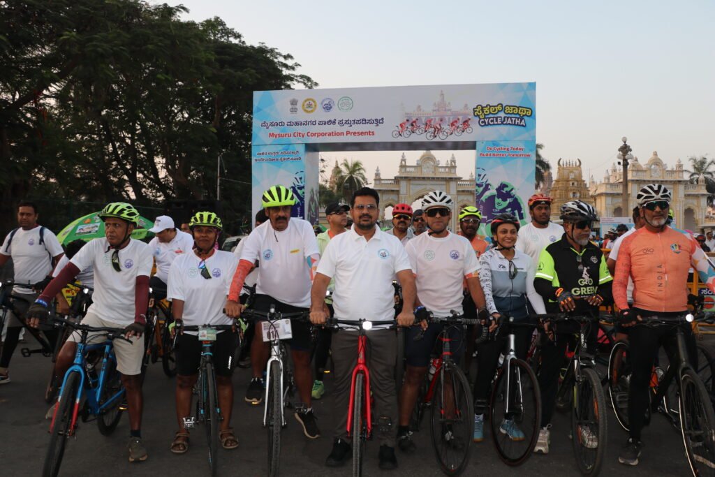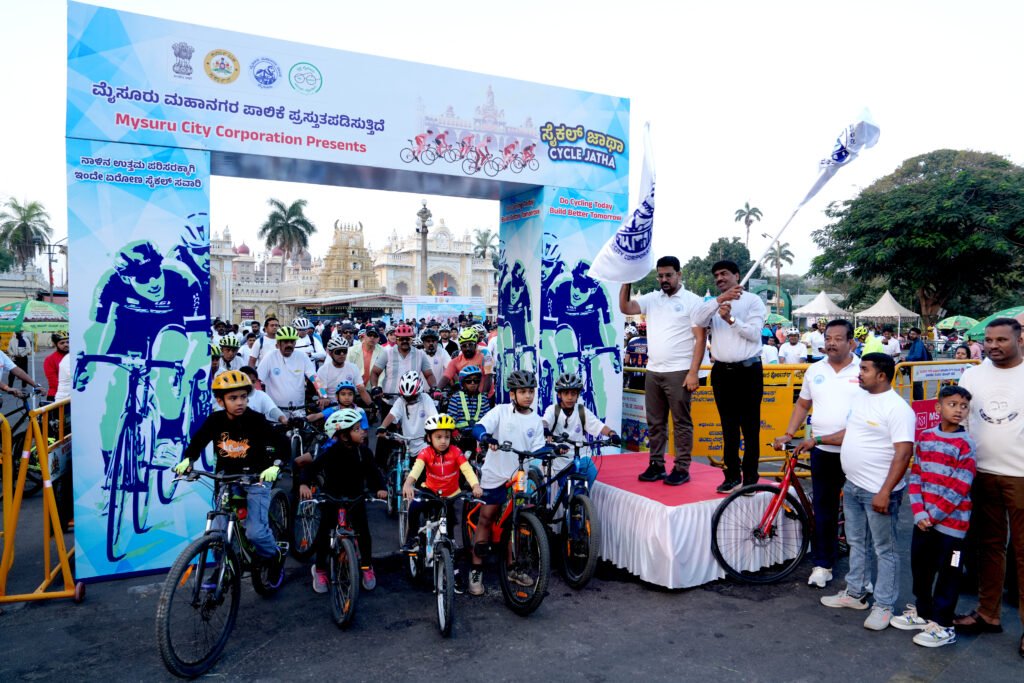 ಮೈಸೂರು ಫೆ 14 :- ನಮ್ಮ ಹೆಮ್ಮೆಯ ಅರಮನೆ ನಗರಿಯನ್ನು ಸ್ವಚ್ಛತೆಯಲ್ಲಿ ಮತ್ತೊಮ್ಮೆ ದೇಶದ ಮಟ್ಟದಲ್ಲಿ ‘ನಂಬರ್ 1’ ಸ್ಥಾನಕ್ಕೆ ತರುವ ಮಹತ್ವಾಕಾಂಕ್ಷಿ ಗುರಿಯನ್ನು ಮುಂದಿಟ್ಟುಕೊಂಡು ಆಯೋಜಿಸಲಾಗಿದ್ದ ಬೃಹತ್ ಸೈಕಲ್ ಜಾಥಾ ಭಾನುವಾರ ಉತ್ಸಾಹಭರಿತವಾಗಿ ನೆರವೇರಿತು. “ನಾಳಿನ ಉತ್ತಮ ಪರಿಸರಕ್ಕಾಗಿ ಇಂದೇ ಏರೋಣ ಸೈಕಲ್ ಸವಾರಿ” ಎಂಬ ಘೋಷವಾಕ್ಯವನ್ನು ಹೊತ್ತ ಈ ಜಾಥಾ ನಗರದ ಜನರಲ್ಲಿ ಪರಿಸರ ಸಂರಕ್ಷಣೆ ಹಾಗೂ ಸ್ವಚ್ಛತಾ ಜಾಗೃತಿ ಮೂಡಿಸುವಲ್ಲಿ ಪ್ರಮುಖ ಹೆಜ್ಜೆಯಾಯಿತು.