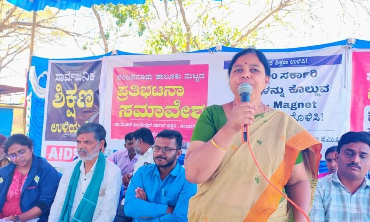 ನಂಜನಗೂಡಿನ ಡಾ. ಬಿ. ಆರ್ ಅಂಬೇಡ್ಕರ್ ಸರ್ಕಲ್ ಬಳಿ, ರಾಜ್ಯ ಸರ್ಕಾರವು ಕೆಪಿಎಸ್ ಮ್ಯಾಗ್ನೆಟ್ ಶಾಲಾ ಯೋಜನೆ ಅಡಿಯಲ್ಲಿ ಮುಚ್ಚುತ್ತಿರುವ ಹದಿನಾರುಮೋಳೆ , ಮೂಡಹಳ್ಳಿ, ಮಲ್ಲರಾಜನಹುಂಡಿ, ಮಾದಯ್ಯನಹುಂಡಿ, ಆಲತ್ತೂರು, ಇಮ್ಮಾವು, ಇಮ್ಮಾವುಹುಂಡಿ (ಉಪ್ಪಲಿಗರ ಉಂಡಿ), ಕೆಂಪಿಸಿದ್ದನಹುಂಡಿ, ಹುಳಿಮಾವು, ತೊರೆಮಾವು, ಬೊಕ್ಕಹಳ್ಳಿ, ಗೀಕಹಳ್ಳಿಹುಂಡಿ, ಆಲಂಬೂರು ಮುಂಟಿ, ಅಳಗಂಚಿ ಶಾಲೆಗಳನ್ನು ಉಳಿಸಲು, AIDSO ನೇತೃತ್ವದಲ್ಲಿ ನಂಜನಗೂಡು ತಾಲೂಕು ಮಟ್ಟದ ಪ್ರತಿಭಟನಾ ಸಮಾವೇಶವನ್ನು ಸಂಘಟಿಸಲಾಗಿತ್ತು.